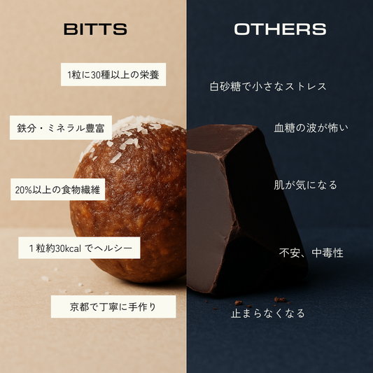 こんなに美味しくて健康にも良いなんてびっくりです。1粒で十分満足できます。仕事で帰りが遅くなることが多く、そんなときにBITTSを活用したいと思い購入しましたが、大正解でした。心も体も満たせる1粒を大切に噛み締めていきたいです。